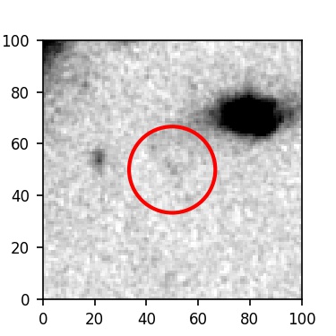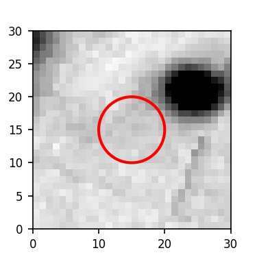 The red circle in the various panels is 1" in radius. The images are 6"x6".