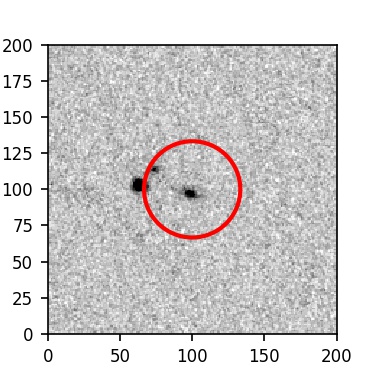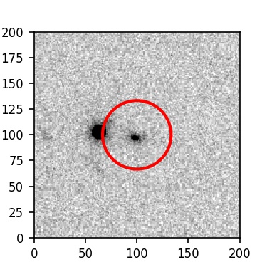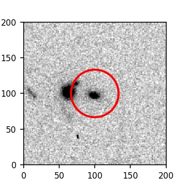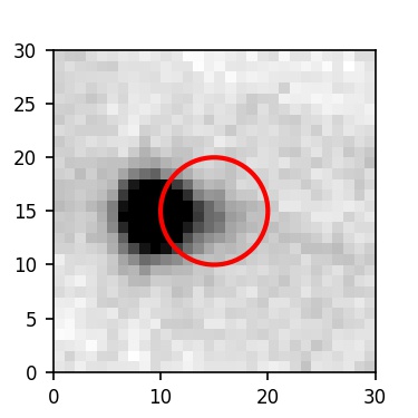 The red circle in the various panels is 1" in radius. The images are 6"x6".