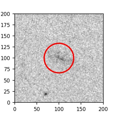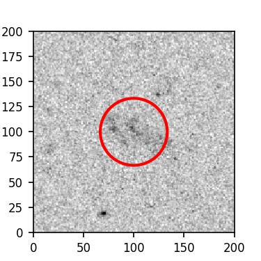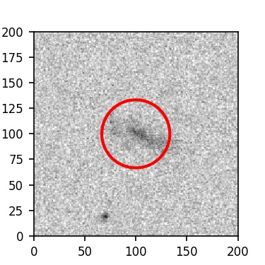 The red circle in the various panels is 1" in radius. The images are 6"x6".