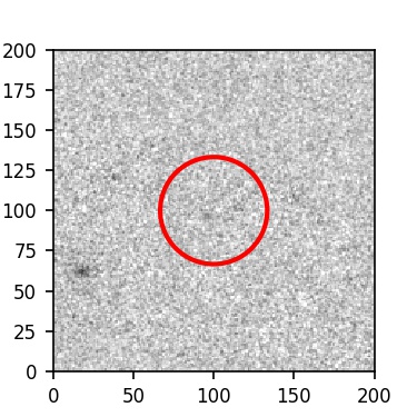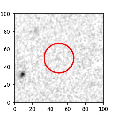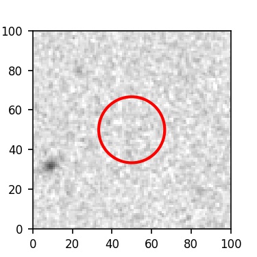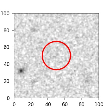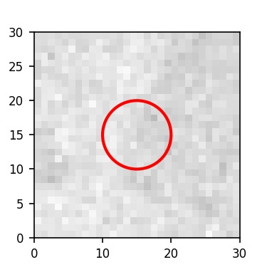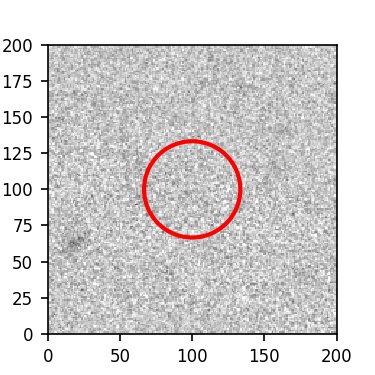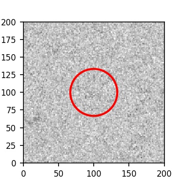 The red circle in the various panels is 1" in radius. The images are 6"x6".