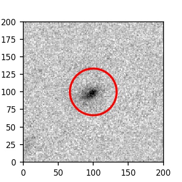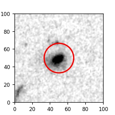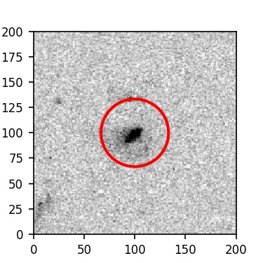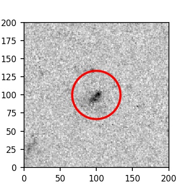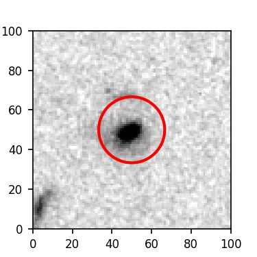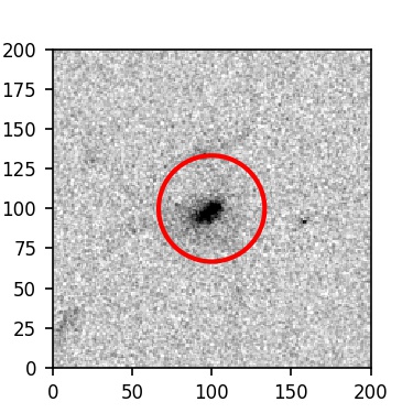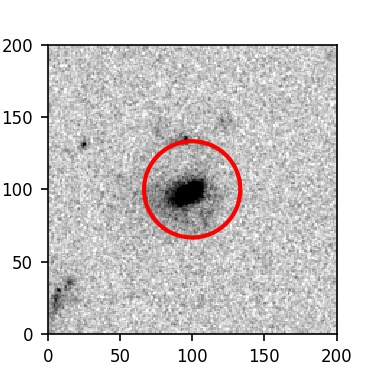 The red circle in the various panels is 1" in radius. The images are 6"x6".