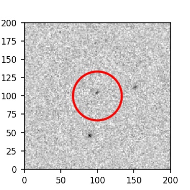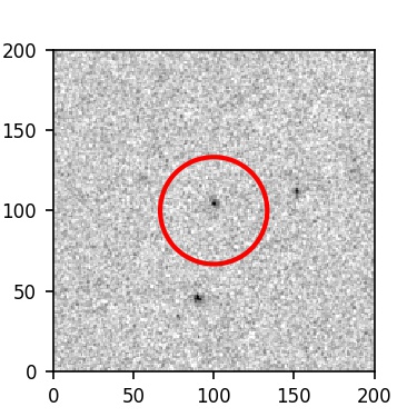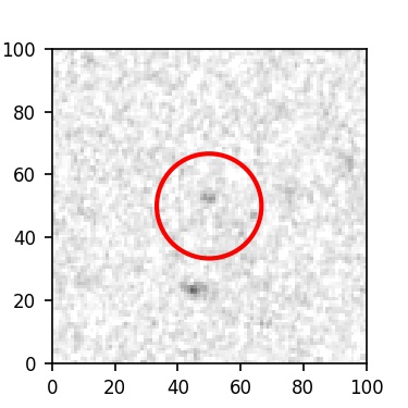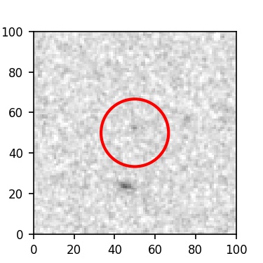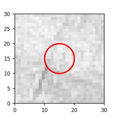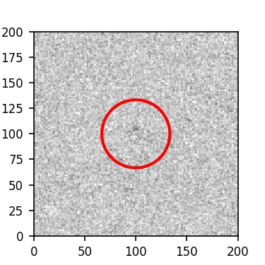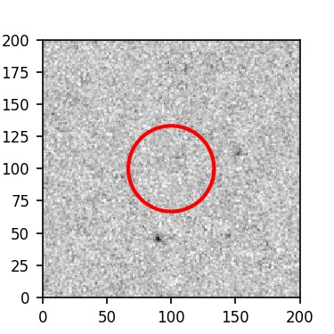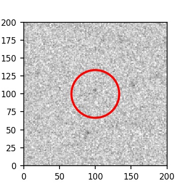 The red circle in the various panels is 1" in radius. The images are 6"x6".