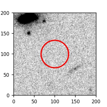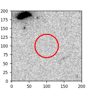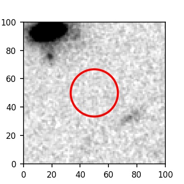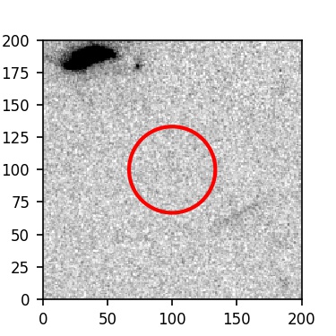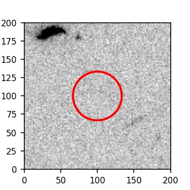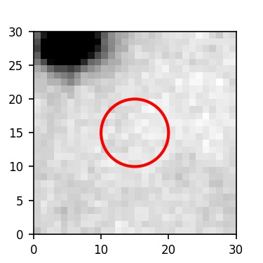 The red circle in the various panels is 1" in radius. The images are 6"x6".
