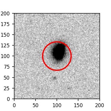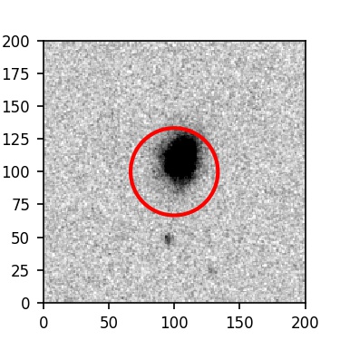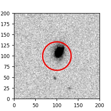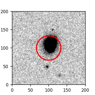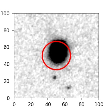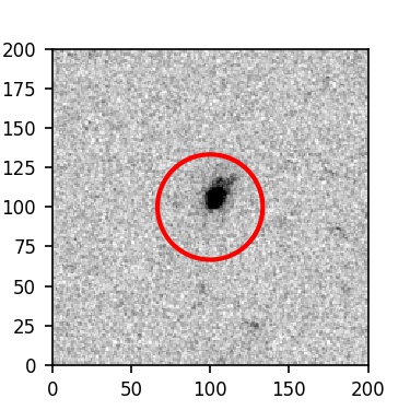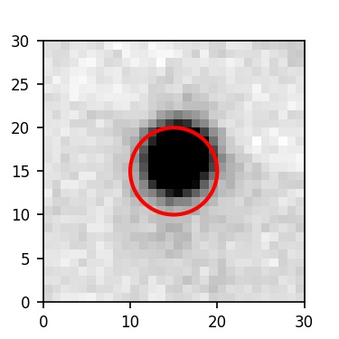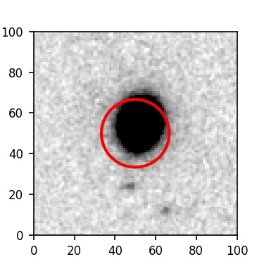 The red circle in the various panels is 1" in radius. The images are 6"x6".