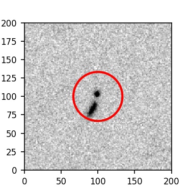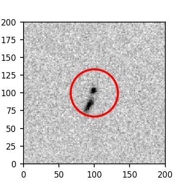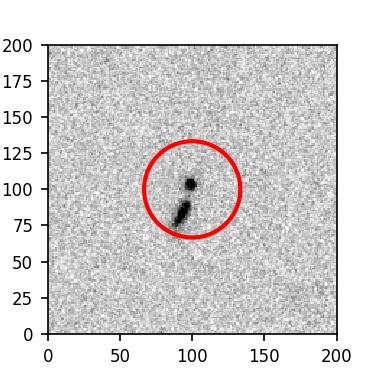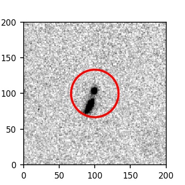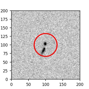 The red circle in the various panels is 1" in radius. The images are 6"x6".