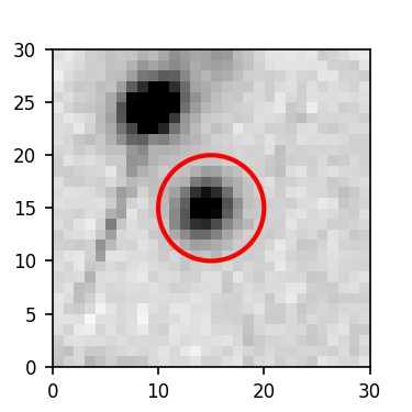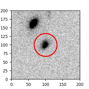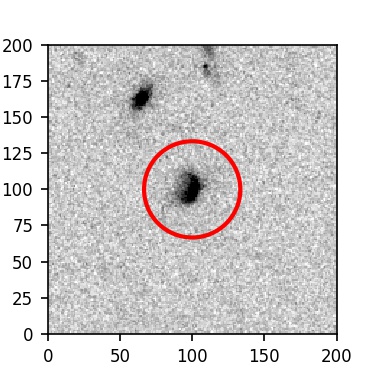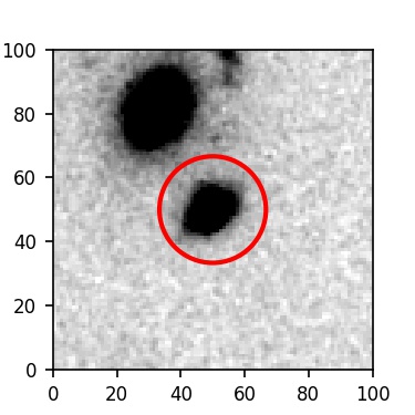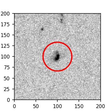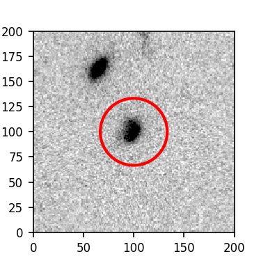 The red circle in the various panels is 1" in radius. The images are 6"x6".