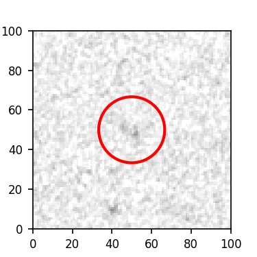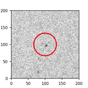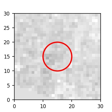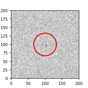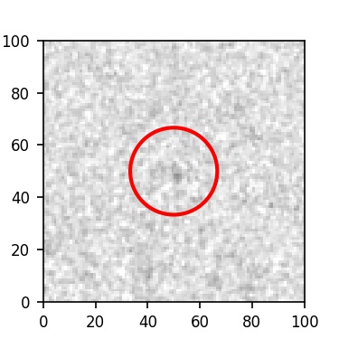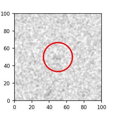 The red circle in the various panels is 1" in radius. The images are 6"x6".