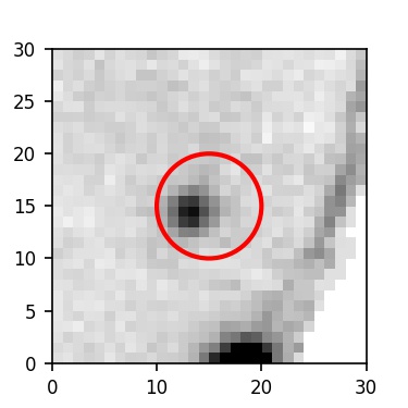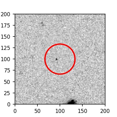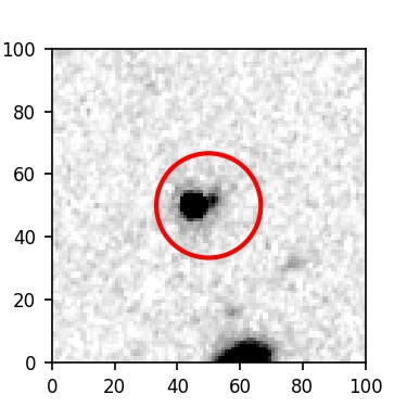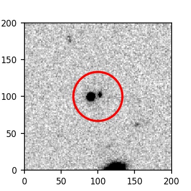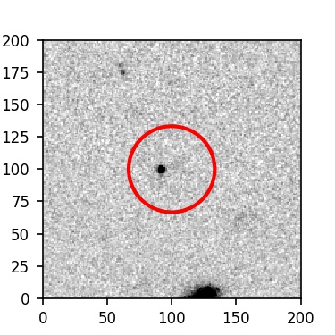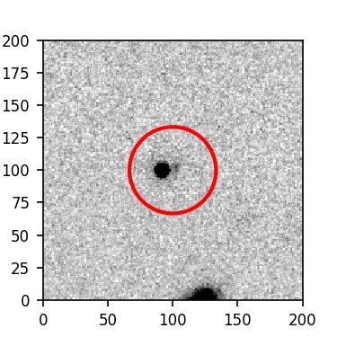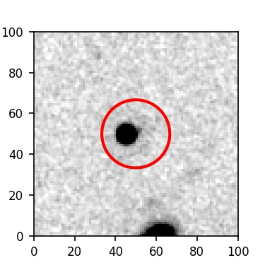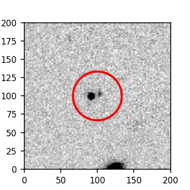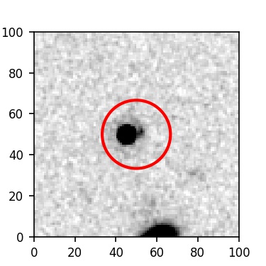The red circle in the various panels is 1" in radius. The images are 6"x6".