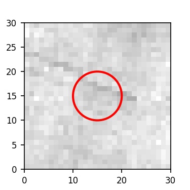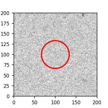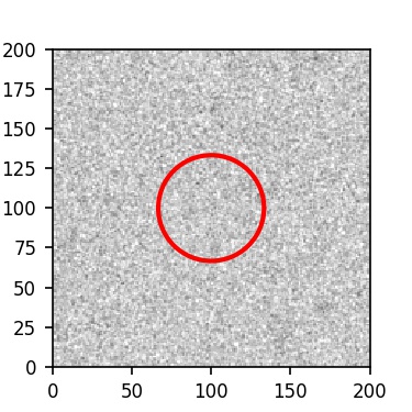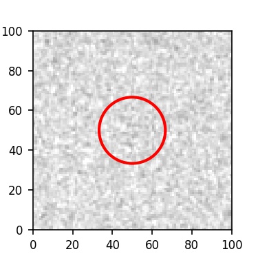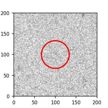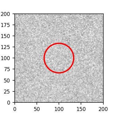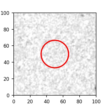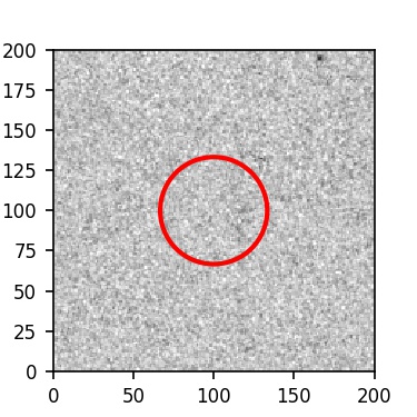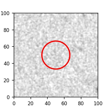 The red circle in the various panels is 1" in radius. The images are 6"x6".