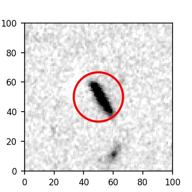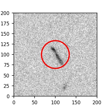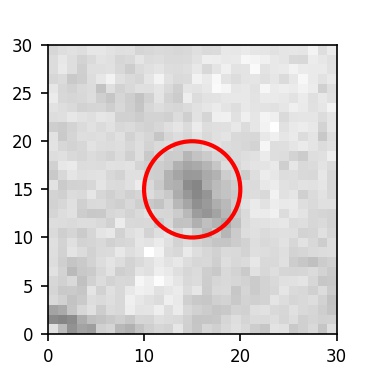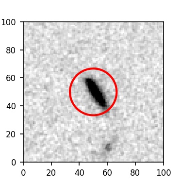 The red circle in the various panels is 1" in radius. The images are 6"x6".