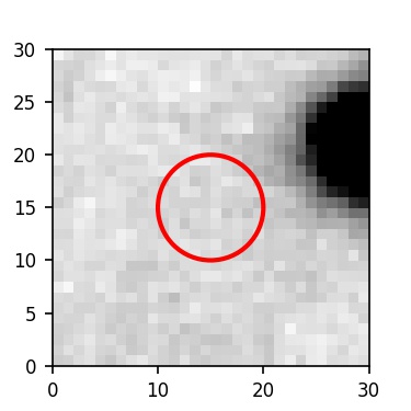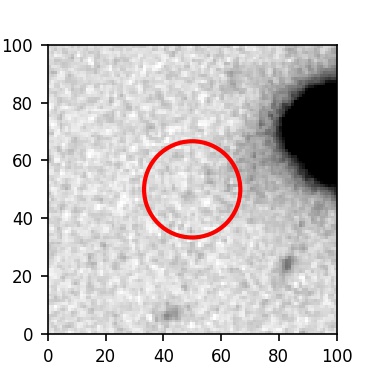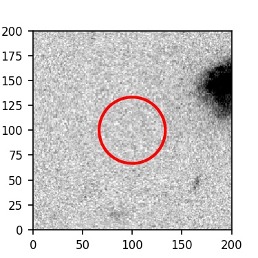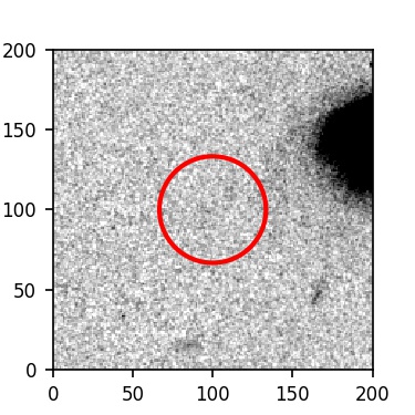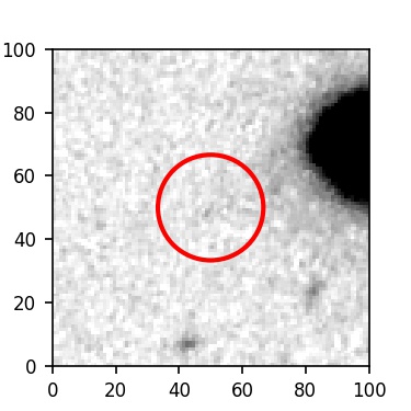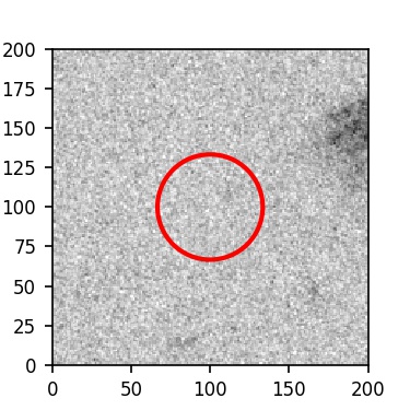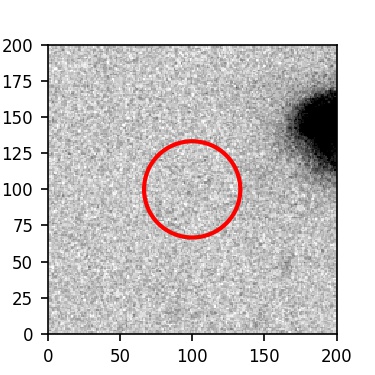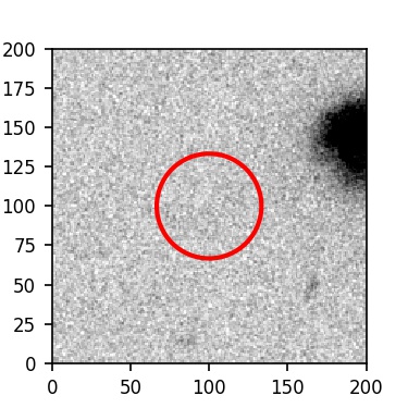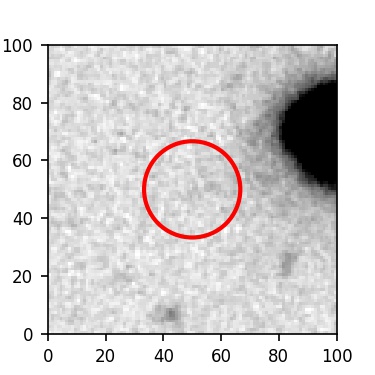 The red circle in the various panels is 1" in radius. The images are 6"x6".