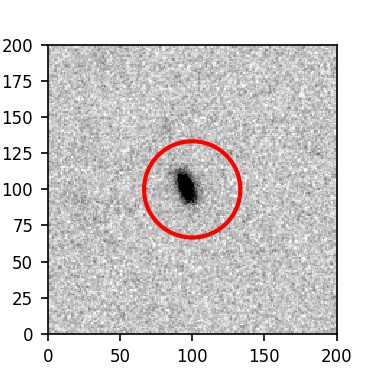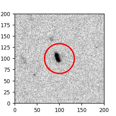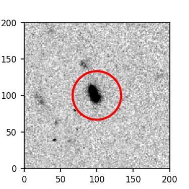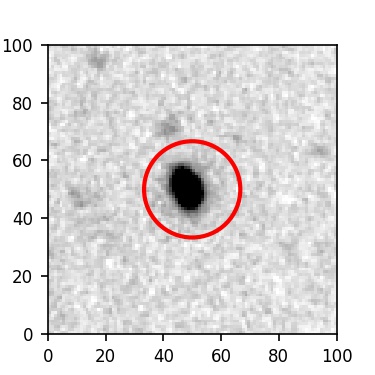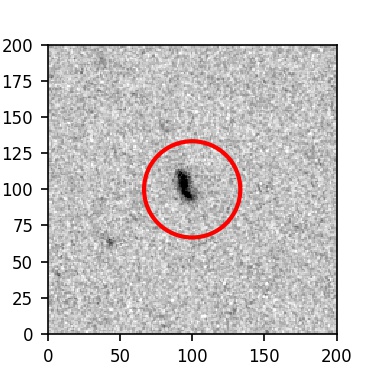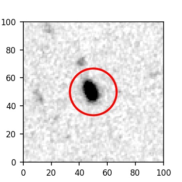 The red circle in the various panels is 1" in radius. The images are 6"x6".