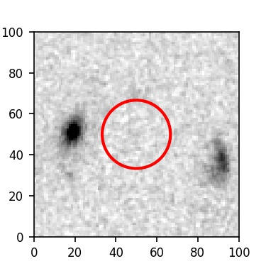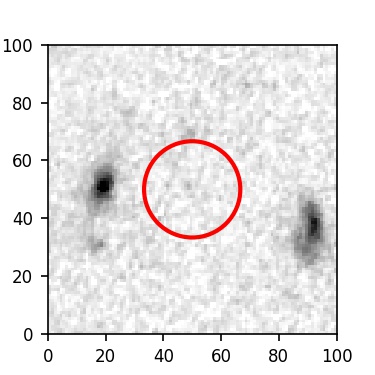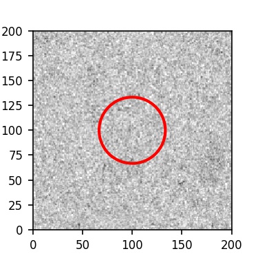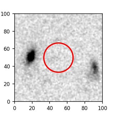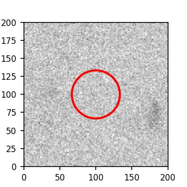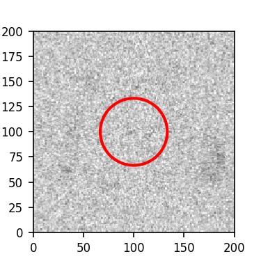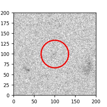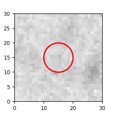 The red circle in the various panels is 1" in radius. The images are 6"x6".
