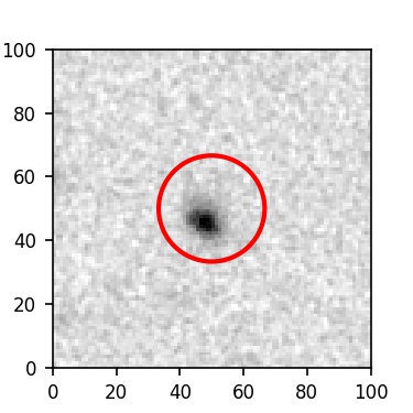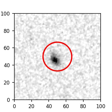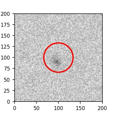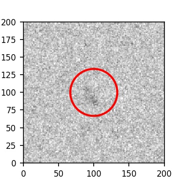 The red circle in the various panels is 1" in radius. The images are 6"x6".