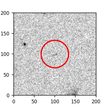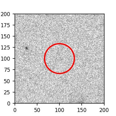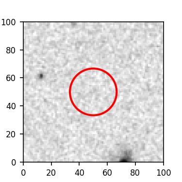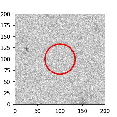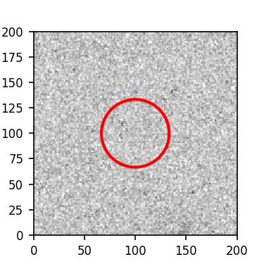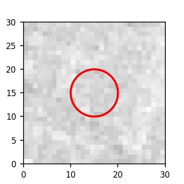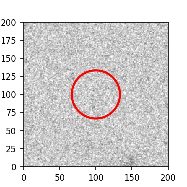 The red circle in the various panels is 1" in radius. The images are 6"x6".