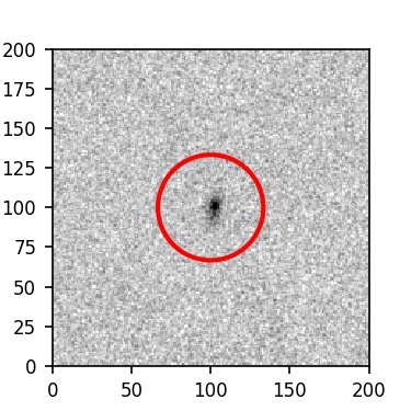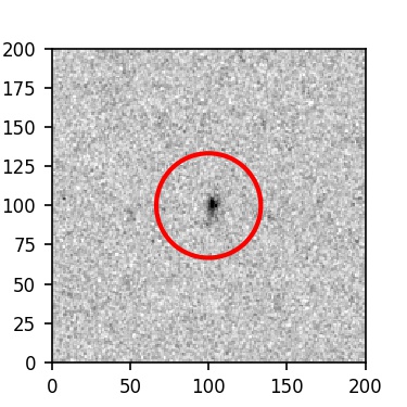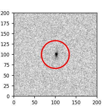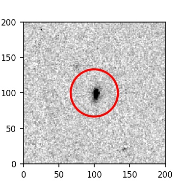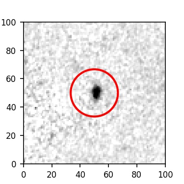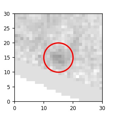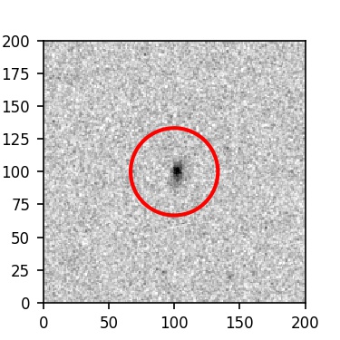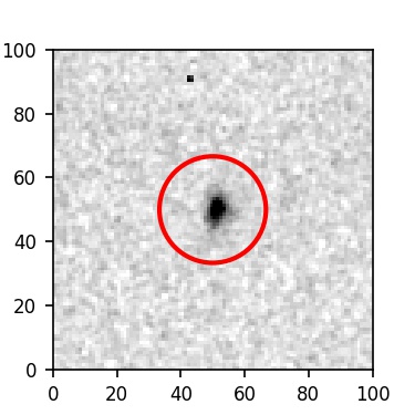 The red circle in the various panels is 1" in radius. The images are 6"x6".