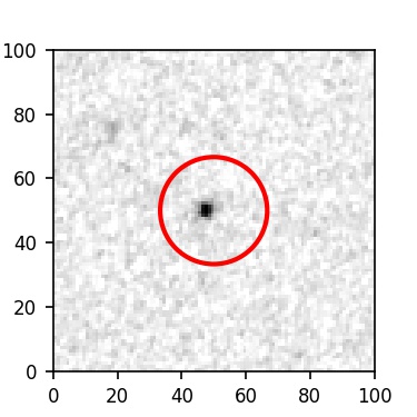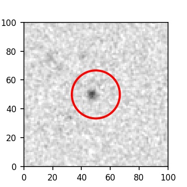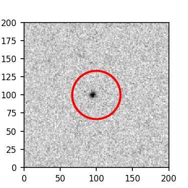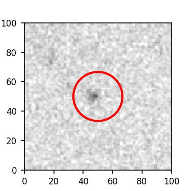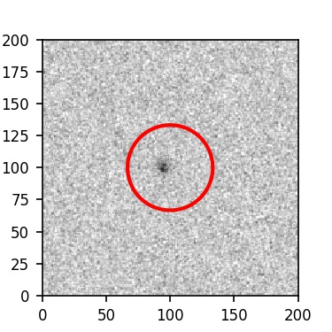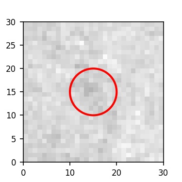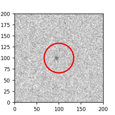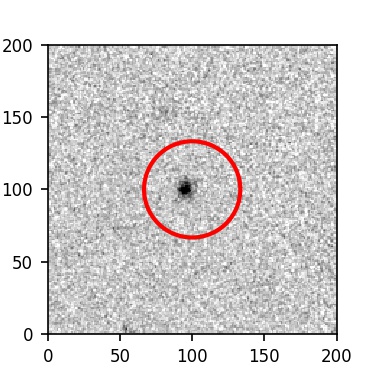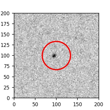 The red circle in the various panels is 1" in radius. The images are 6"x6".