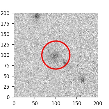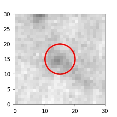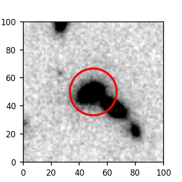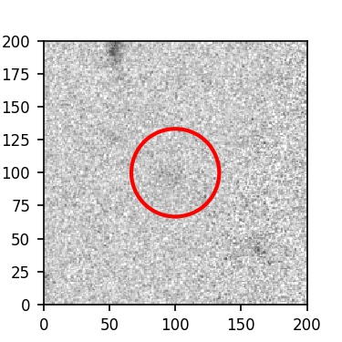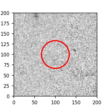 The red circle in the various panels is 1" in radius. The images are 6"x6".