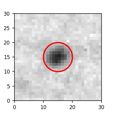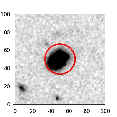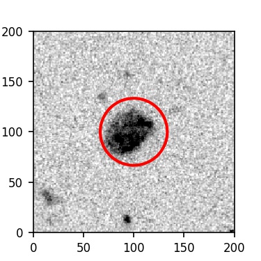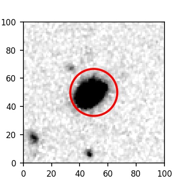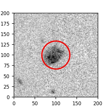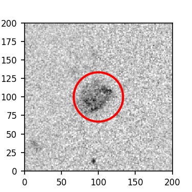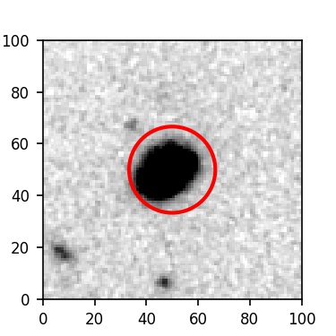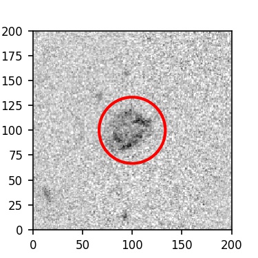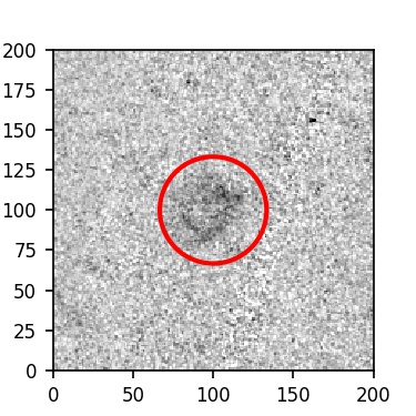 The red circle in the various panels is 1" in radius. The images are 6"x6".