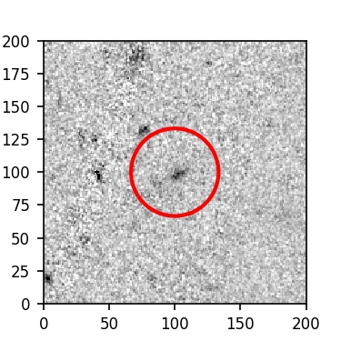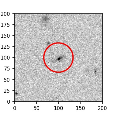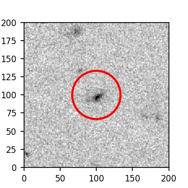 The red circle in the various panels is 1" in radius. The images are 6"x6".