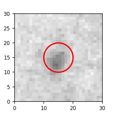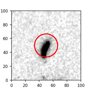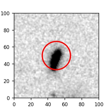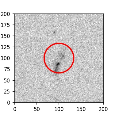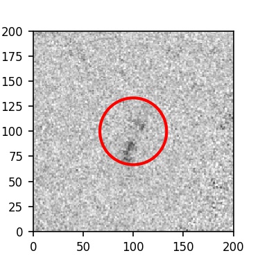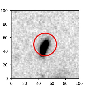 The red circle in the various panels is 1" in radius. The images are 6"x6".