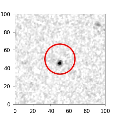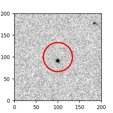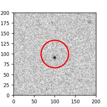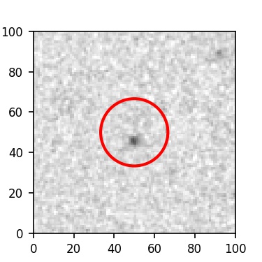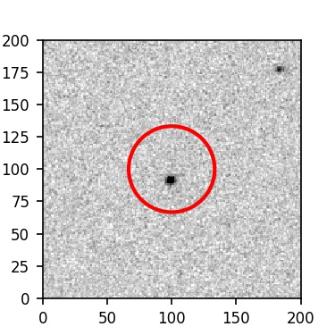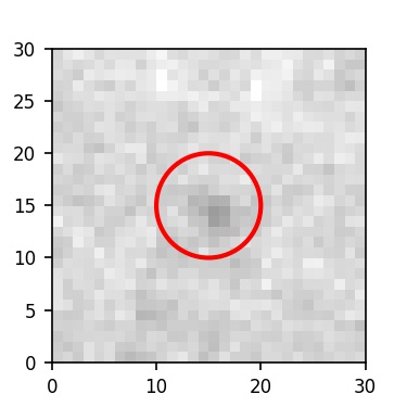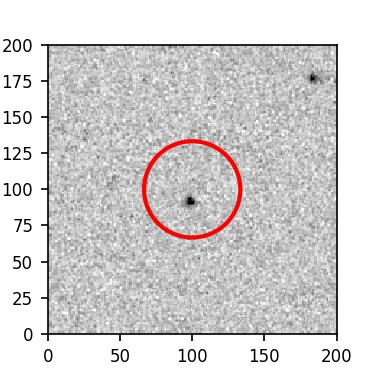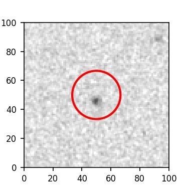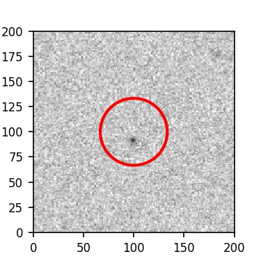 The red circle in the various panels is 1" in radius. The images are 6"x6".