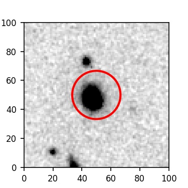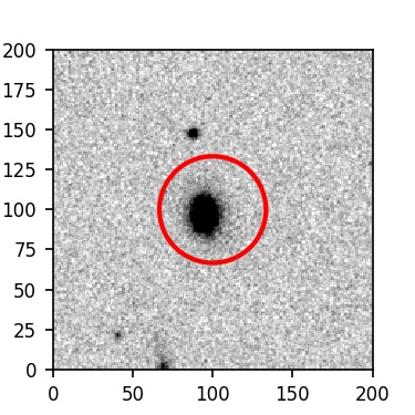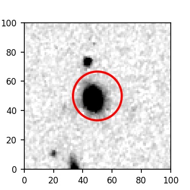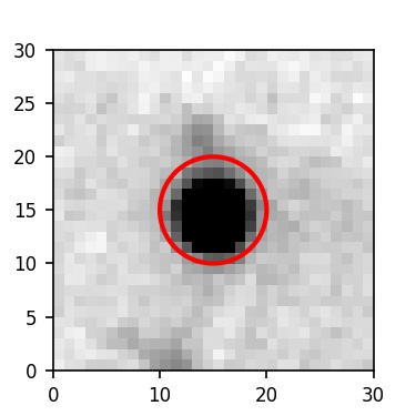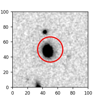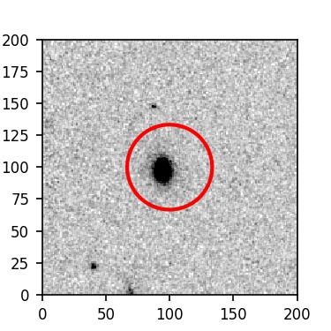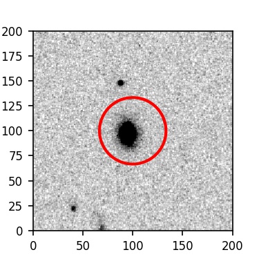 The red circle in the various panels is 1" in radius. The images are 6"x6".