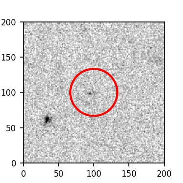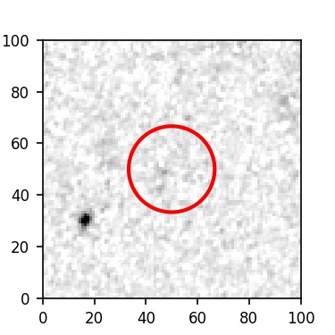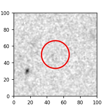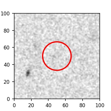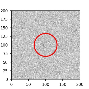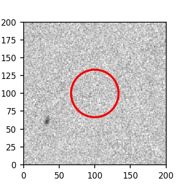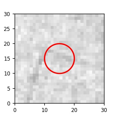 The red circle in the various panels is 1" in radius. The images are 6"x6".