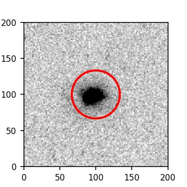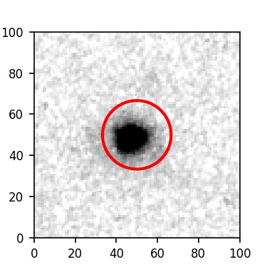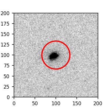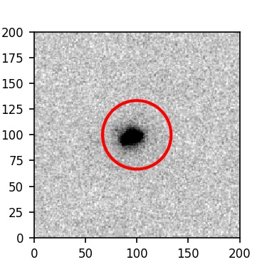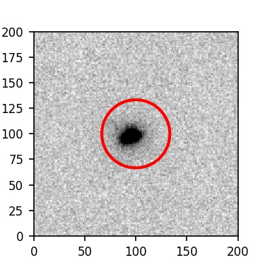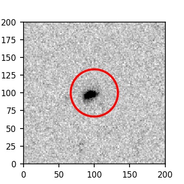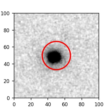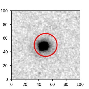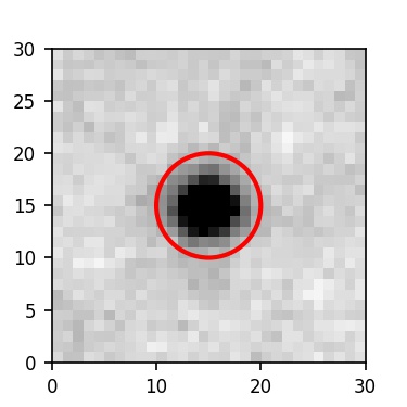 The red circle in the various panels is 1" in radius. The images are 6"x6".