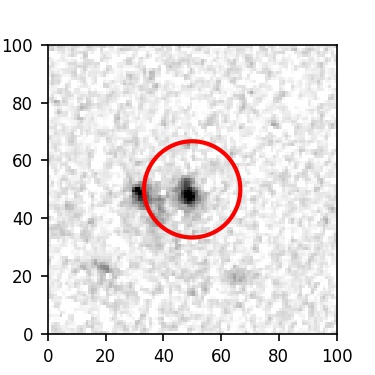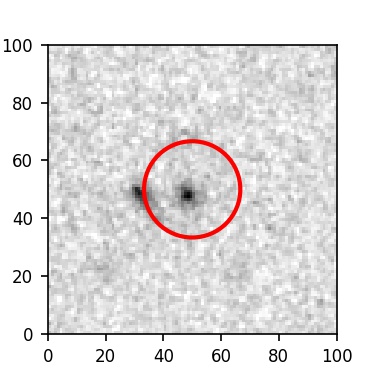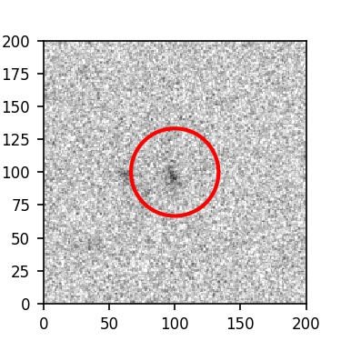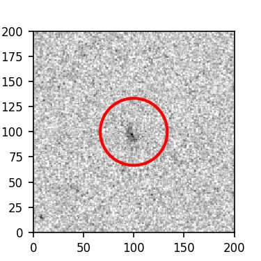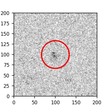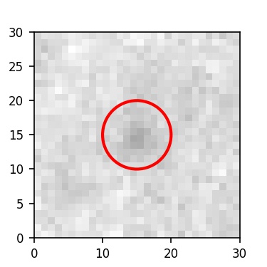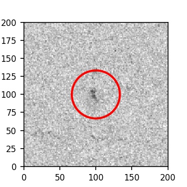 The red circle in the various panels is 1" in radius. The images are 6"x6".