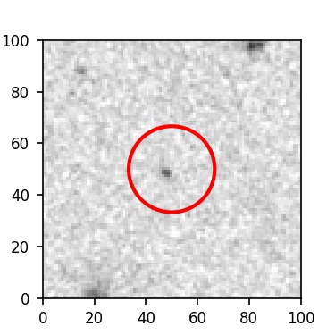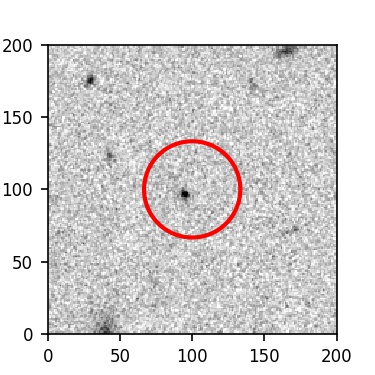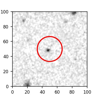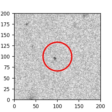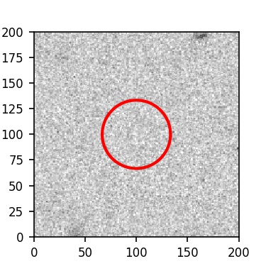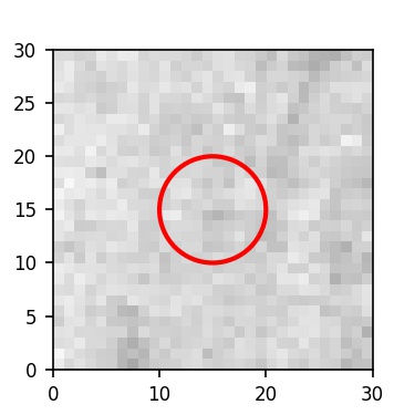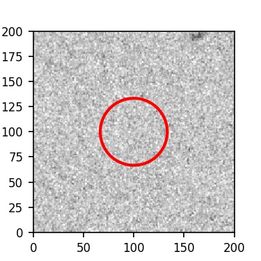 The red circle in the various panels is 1" in radius. The images are 6"x6".