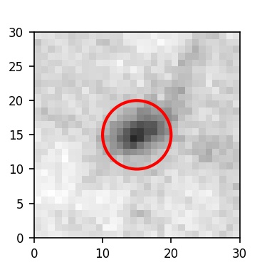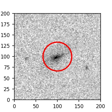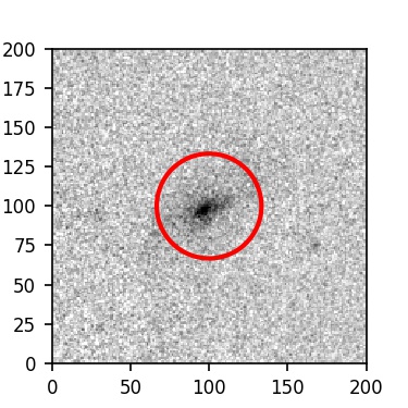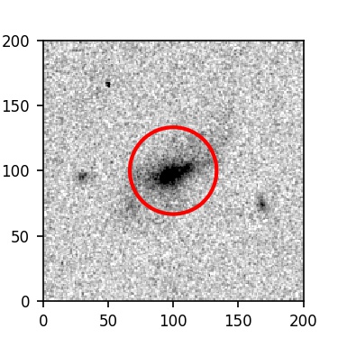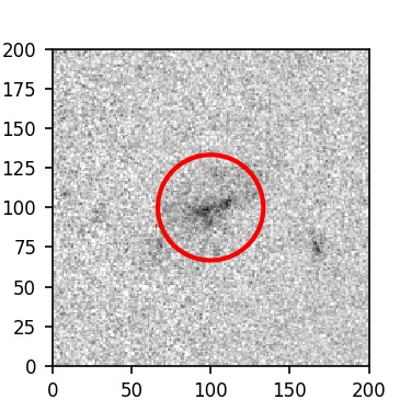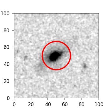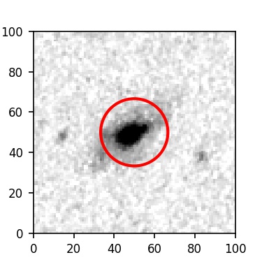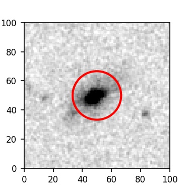 The red circle in the various panels is 1" in radius. The images are 6"x6".