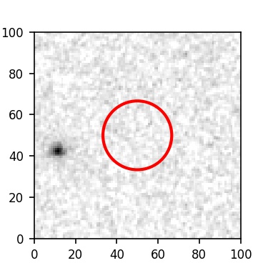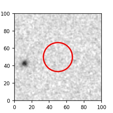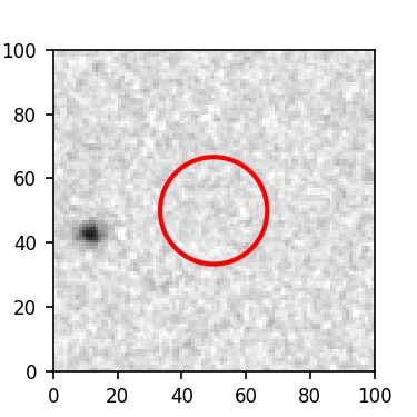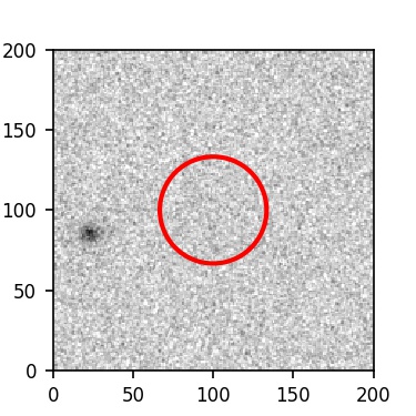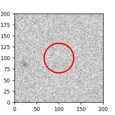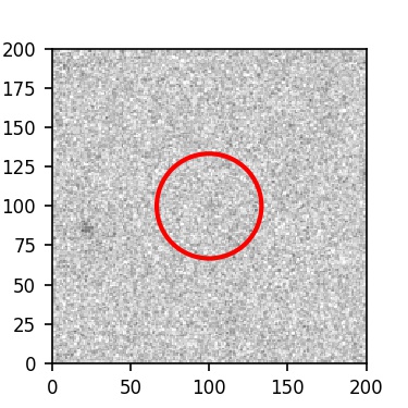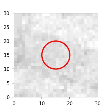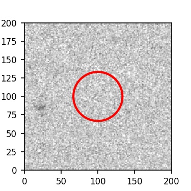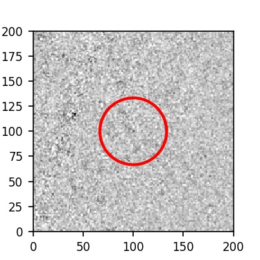 The red circle in the various panels is 1" in radius. The images are 6"x6".