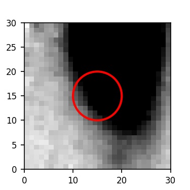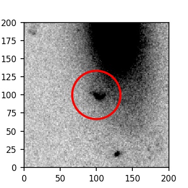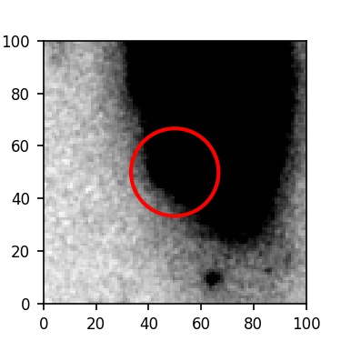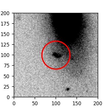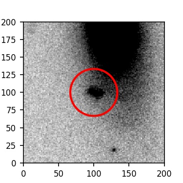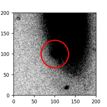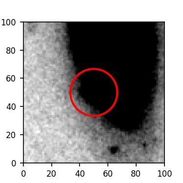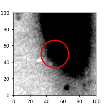 The red circle in the various panels is 1" in radius. The images are 6"x6".