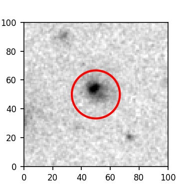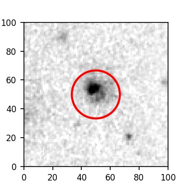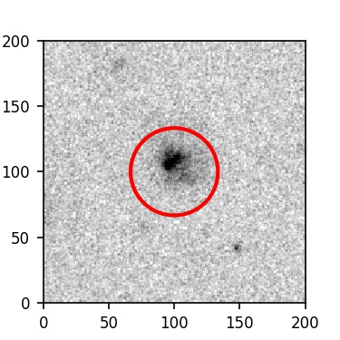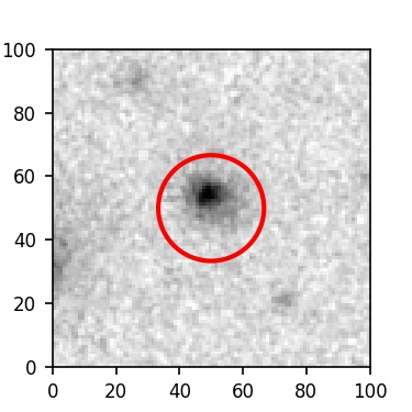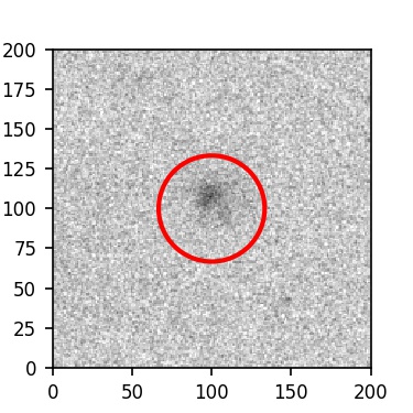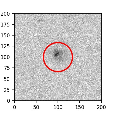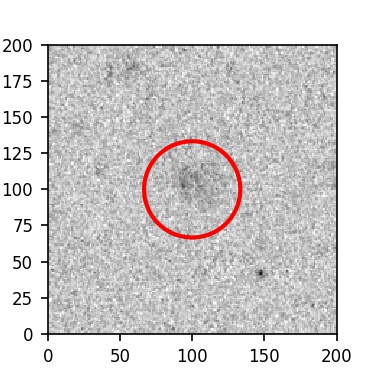 The red circle in the various panels is 1" in radius. The images are 6"x6".