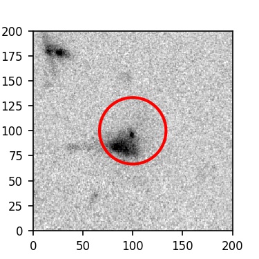 The red circle in the various panels is 1" in radius. The images are 6"x6".