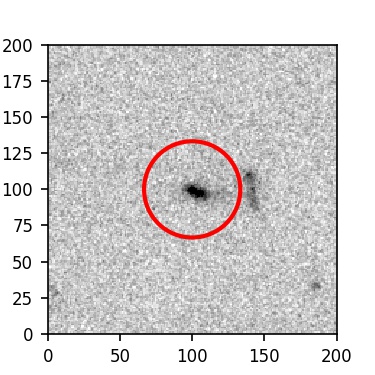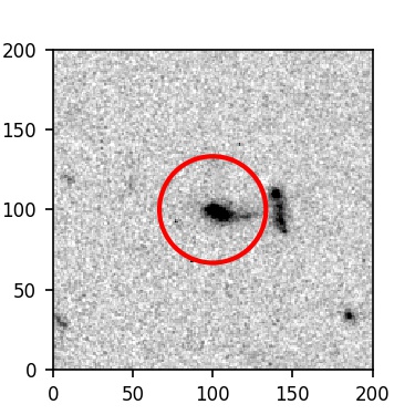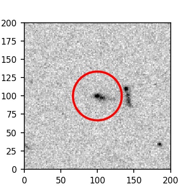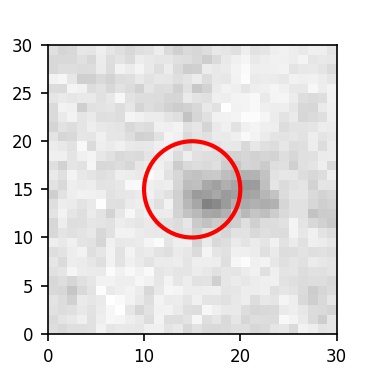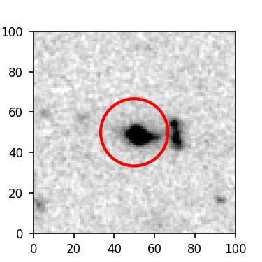 The red circle in the various panels is 1" in radius. The images are 6"x6".
