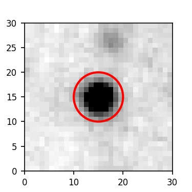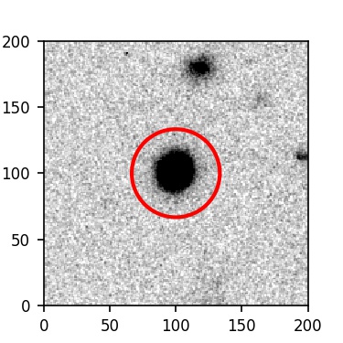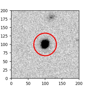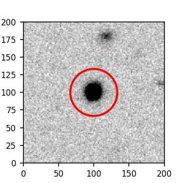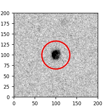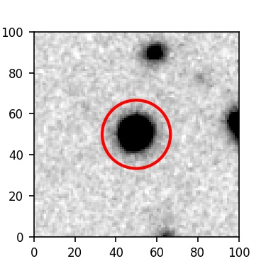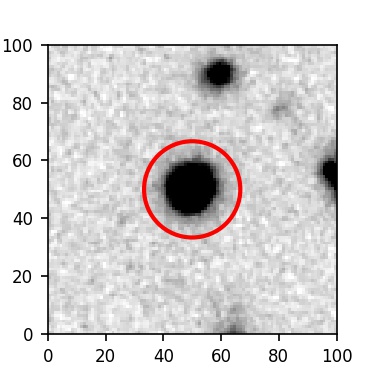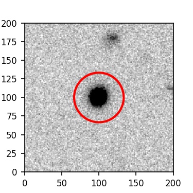 The red circle in the various panels is 1" in radius. The images are 6"x6".