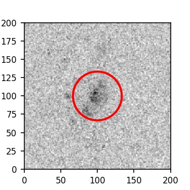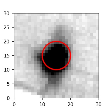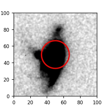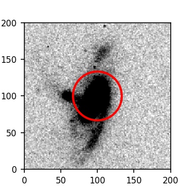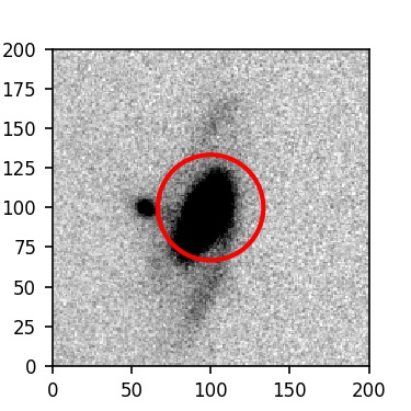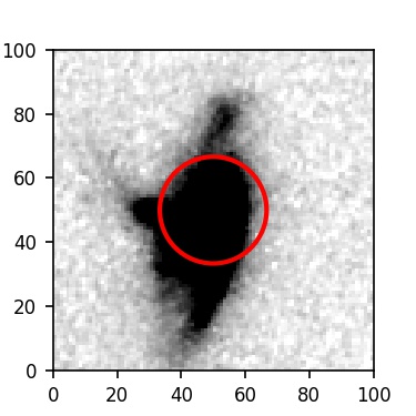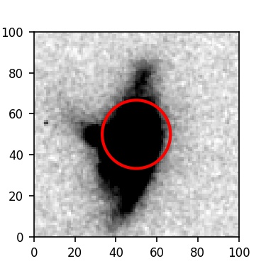 The red circle in the various panels is 1" in radius. The images are 6"x6".