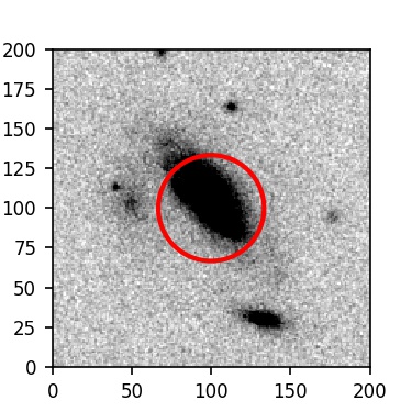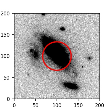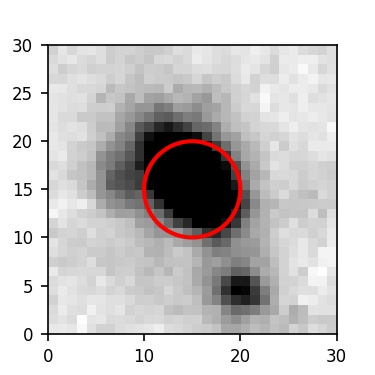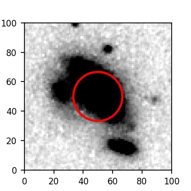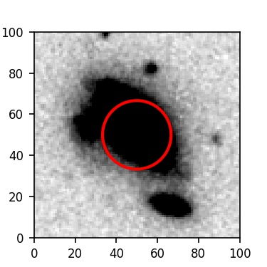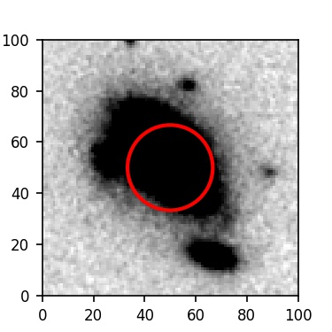 The red circle in the various panels is 1" in radius. The images are 6"x6".
