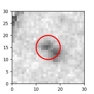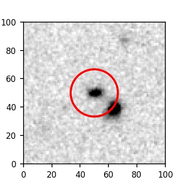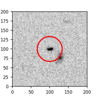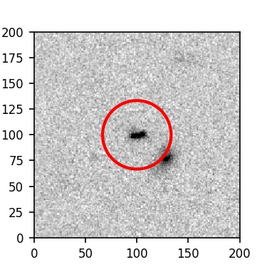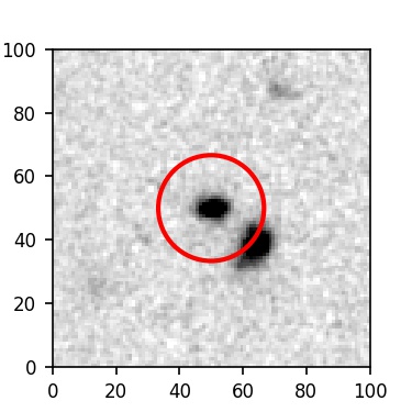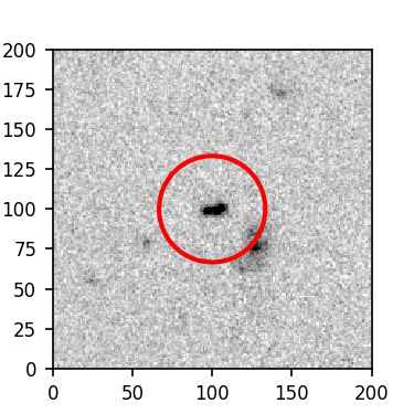 The red circle in the various panels is 1" in radius. The images are 6"x6".