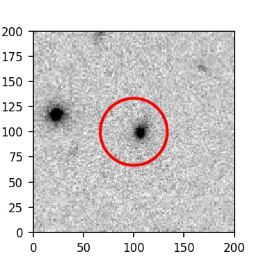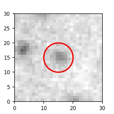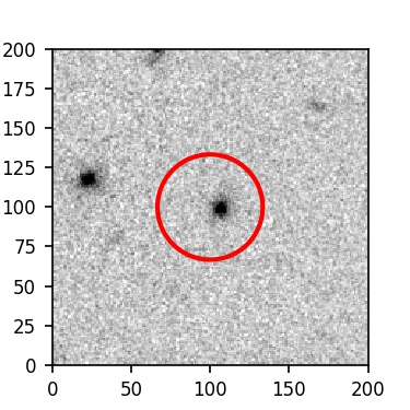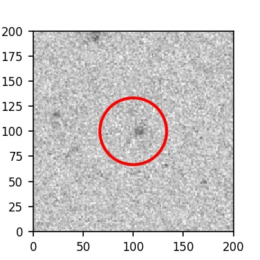The red circle in the various panels is 1" in radius. The images are 6"x6".