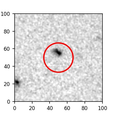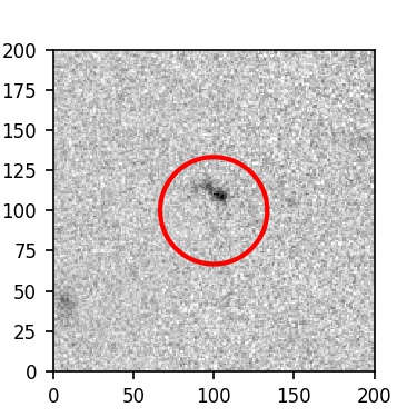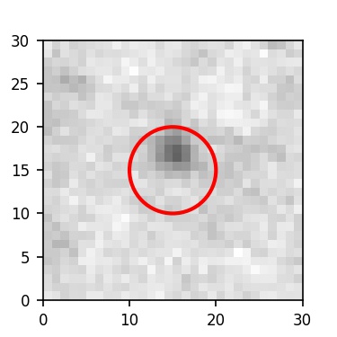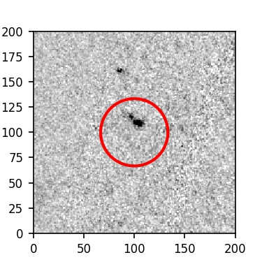 The red circle in the various panels is 1" in radius. The images are 6"x6".