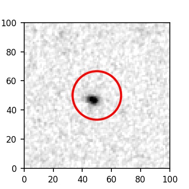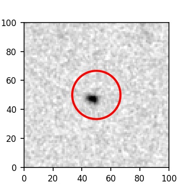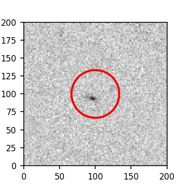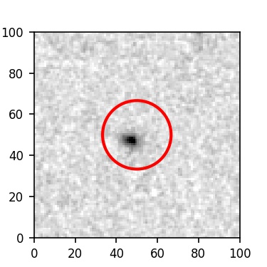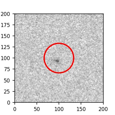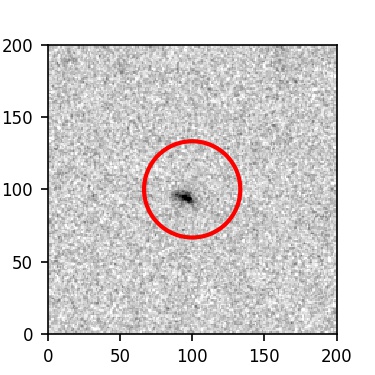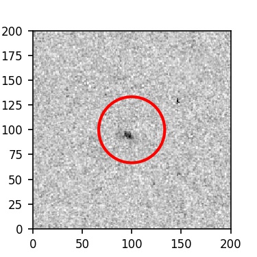 The red circle in the various panels is 1" in radius. The images are 6"x6".