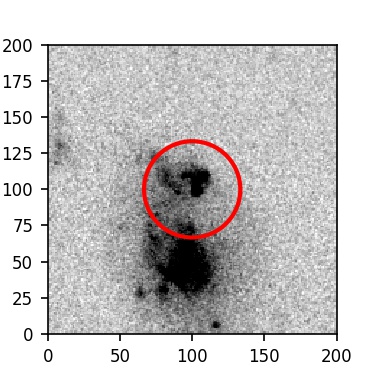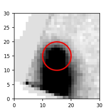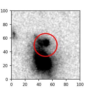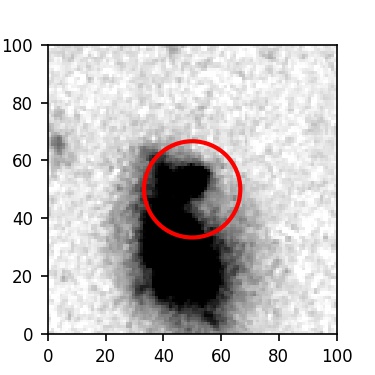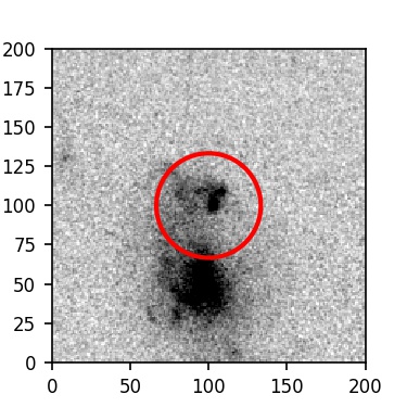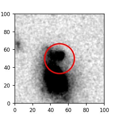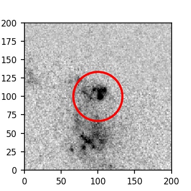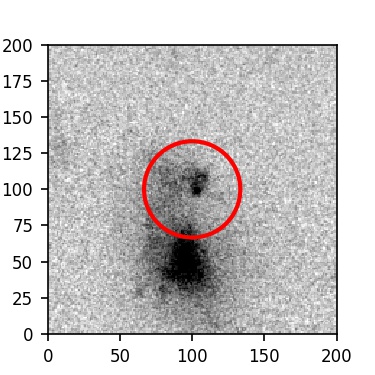 The red circle in the various panels is 1" in radius. The images are 6"x6".