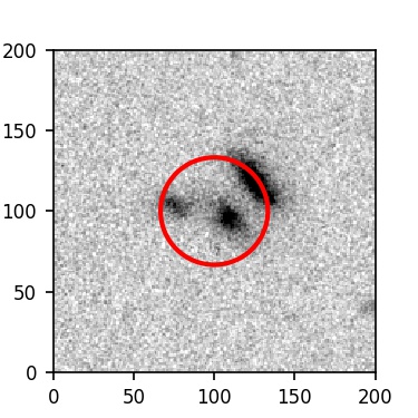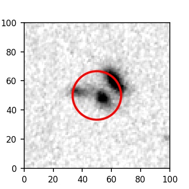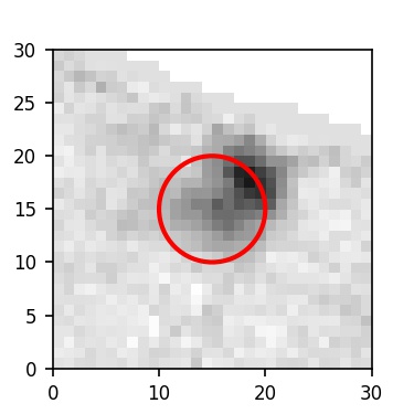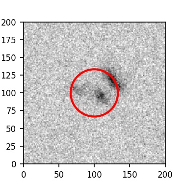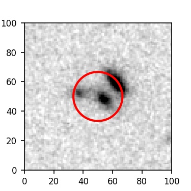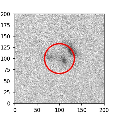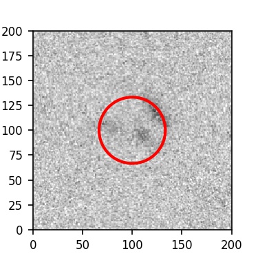 The red circle in the various panels is 1" in radius. The images are 6"x6".