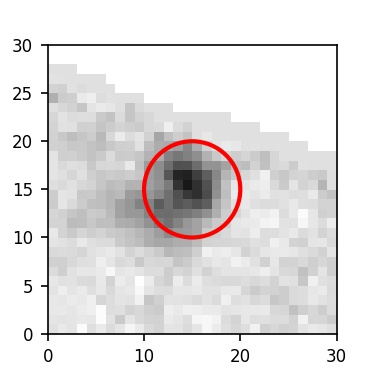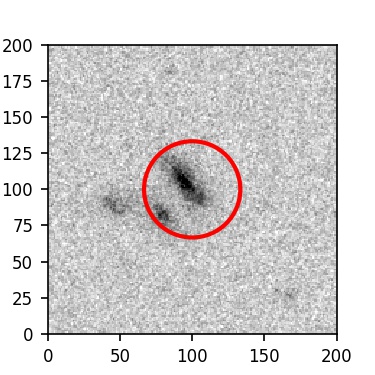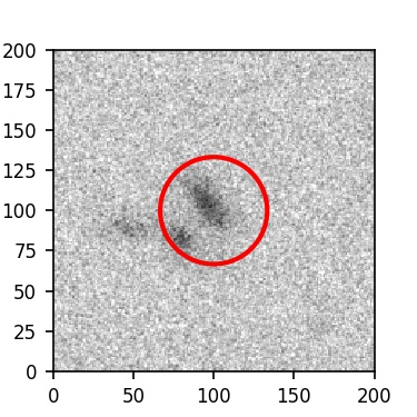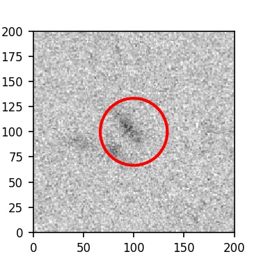 The red circle in the various panels is 1" in radius. The images are 6"x6".
