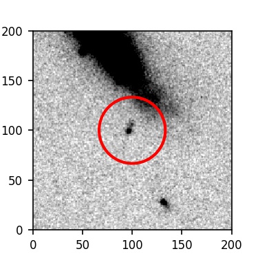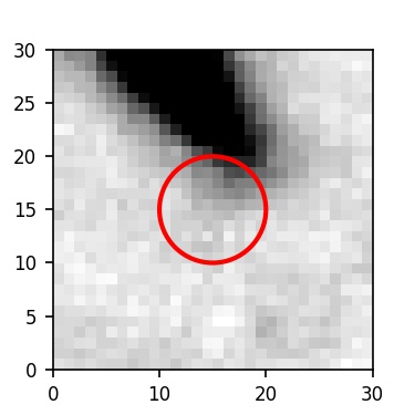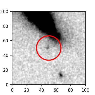 The red circle in the various panels is 1" in radius. The images are 6"x6".