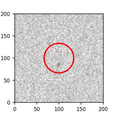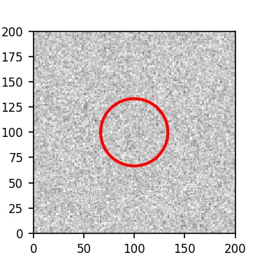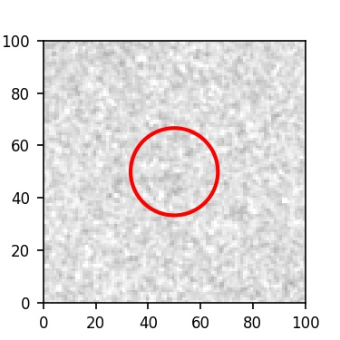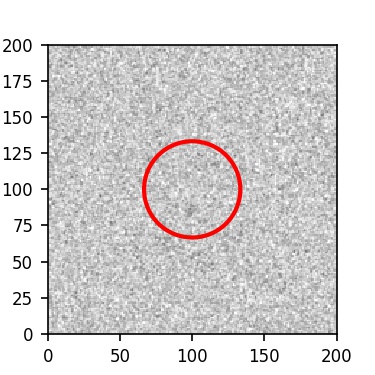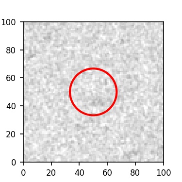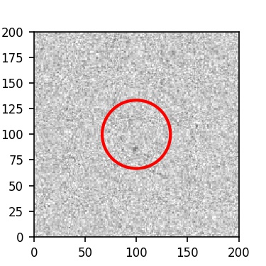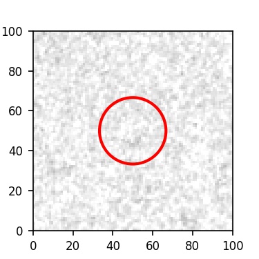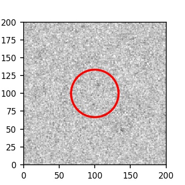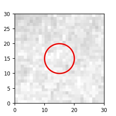 The red circle in the various panels is 1" in radius. The images are 6"x6".