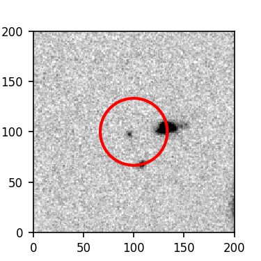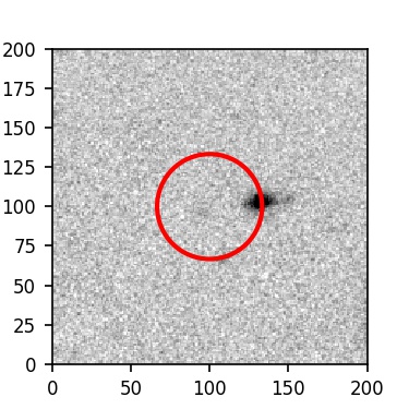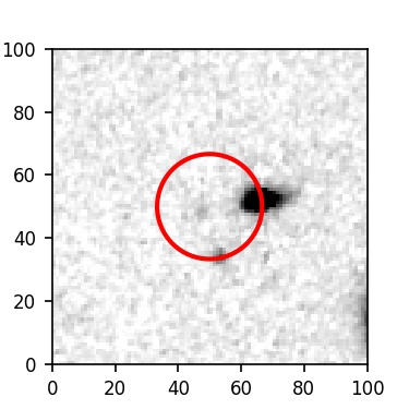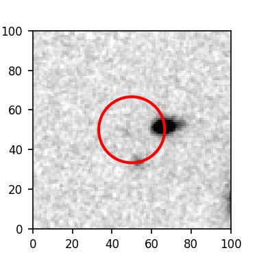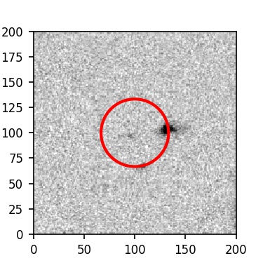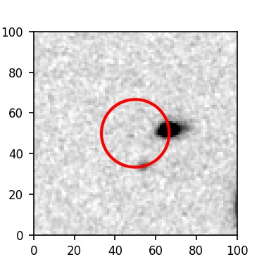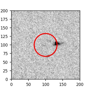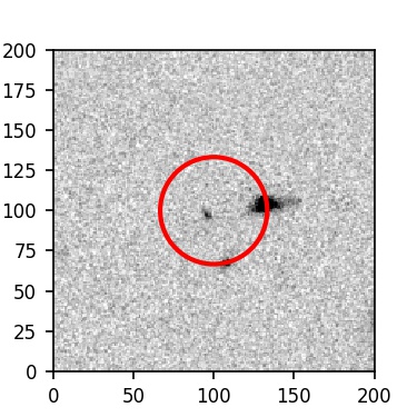 The red circle in the various panels is 1" in radius. The images are 6"x6".